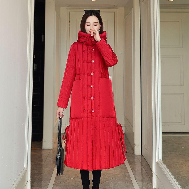 Women's Winter 3XL Plus Size Thickened Padded Warm Outerwear Long Slim Casual Comfortable Hooded Button Jacket