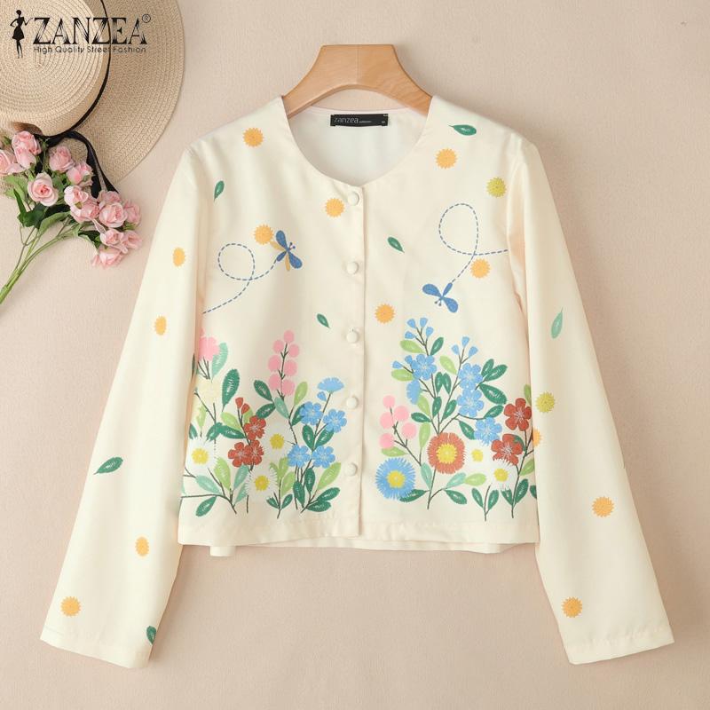 ZANZEA Bluză casual de damă cu gât rotund, mânecă lungă largă, cu imprimeu
