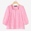 ZANZEA Bluză Casual cu Guler Pătrat pentru Femei, Mâneci 3/4, Largă, Patchwork Dantelă