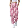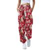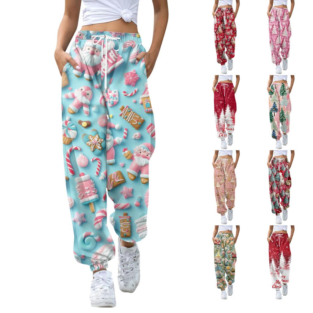 Pantaloni de trening casual de damă cu imprimeu de Crăciun, cu talie cu șnur și manșete la glezne