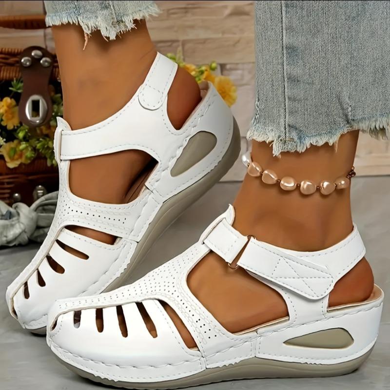 Women's Casual Wedge Heel Sandals Round Toe Cut-Out Design Mid Heel Breathable Comfortable All-Season Wear Easy Buckle Closure Durable Sole