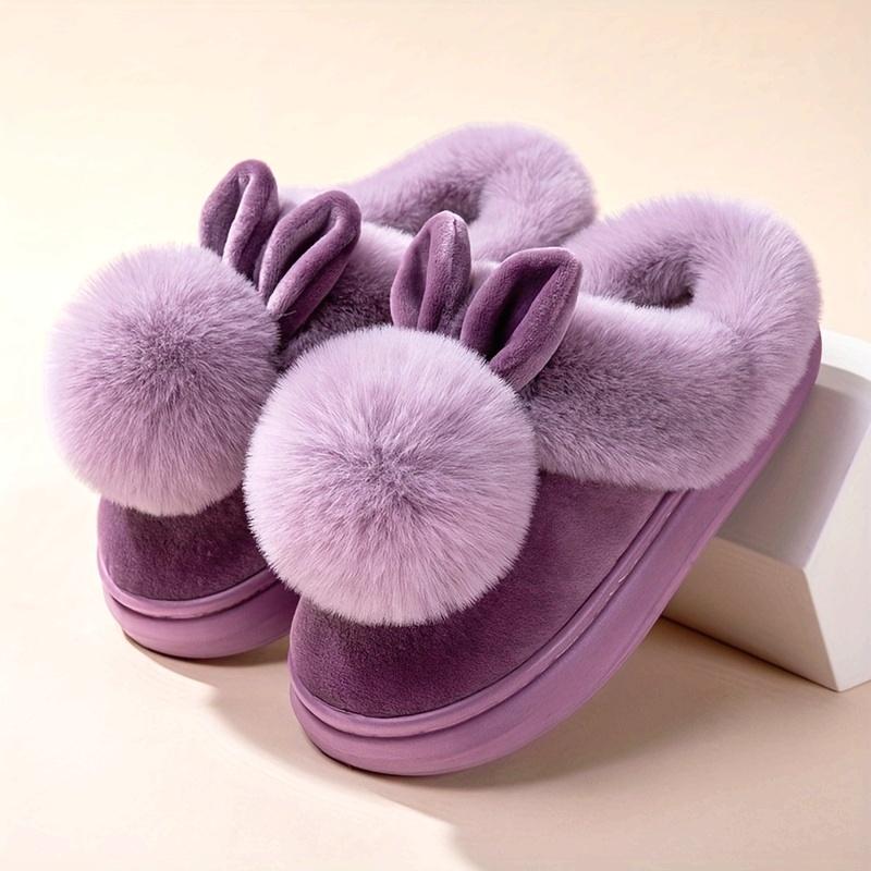 2025 Nou Toamnă & Iarnă Design cu Urechi de Iepure cu Pompom Unic Papuci Călduroși pentru Bărbați & Femei - Papuci de Casă de Cuplu cu Talpă Groasă & Spate Semi-Închis