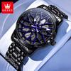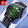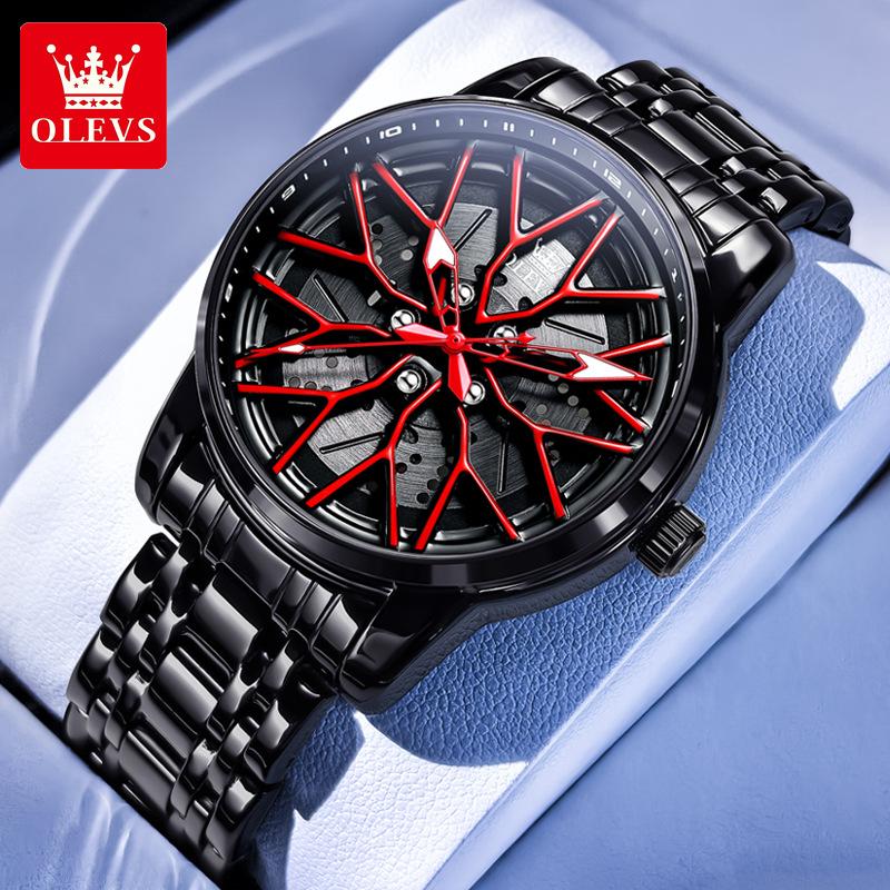 OLEVS Ceas de modă pentru bărbați Jantă roată butuc roată mașină sport Cadran rotativ 360° Ceasuri cu quartz Impermeabil Oțel inoxidabil Ceas de mână pentru bărbați