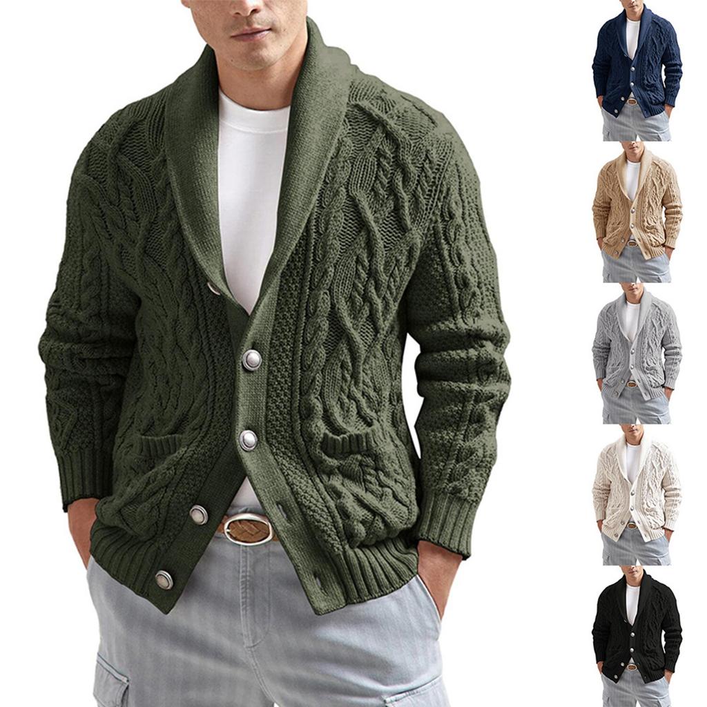 Cardigan tricotat pentru bărbați, culoare uni, croială slim-fit, mâneci lungi, deschis