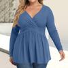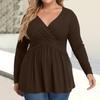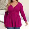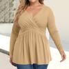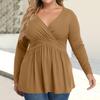 Women's Plus Size Shirt Long Sleeve Solid Color Top Pleated Casual V-Neck Top
