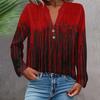 Cămașă de damă la modă și casual cu mânecă lungă, decolteu în V, nasturi și imprimeu, top bluză