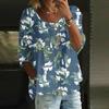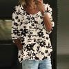 Top casual de damă cu mâneci trei sferturi, larg, cu gât rotund și imprimeu floral