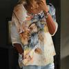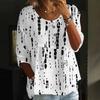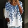 Women's Fashion Casual Three-quarter Sleeve Loose Round Neck Button Floral Print Top