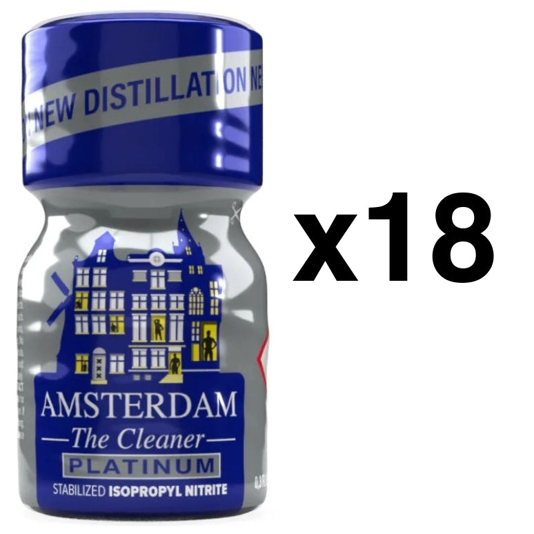 Ce leather cleaner AMSTERDAM PLATINUM est un arôme d'ambiance conçu à base de nitrite de propyle.Il est parfait pour s'amuser grâce à ses effets intenses.Il assure également des moments agréables et plus funs pendant le sexe.Pack de18Précautions d'utilisation: Produit inflammable - ne pas mettre en contact avec une source de chaleur Ne pas ingérer Éviter le contact avec la peau, les yeux et les muqueuses En cas de problèmes, contacter un médecin ou appeler le centre anti-poison le plus proche Tenir hors de portée des mineurs Conserver dans un endroit frais et ventilé Ne pas utiliser avec des stimulants érectiles ni en cas de problèmes cardiaques, vasculaires ou d'insuffisance respiratoire Composition : Isopropyl Nitrite (CAS 541-42-4), Propan-2-ol (CAS 67-63-0)