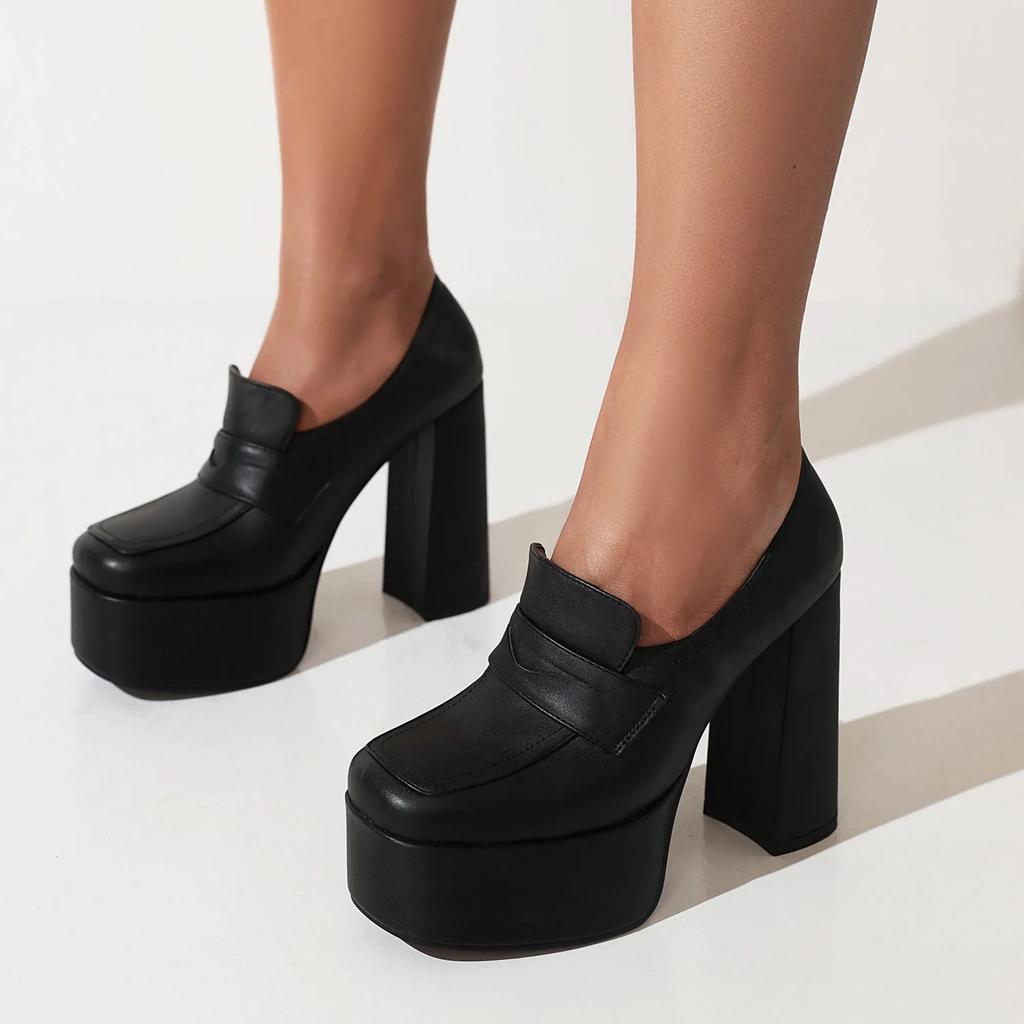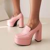 Autumn High Platform Fashion Women Pumps Pink White Soft Leather Square Toe Thick Heels Party Woman Office Shoes Plus Size 34-43
