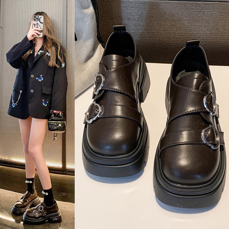Platform British style small leather shoes women's 2025 summer new heightening black single shoes niche design loafers women's