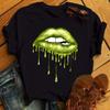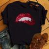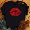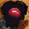 Tricouri cu mânecă scurtă de vară pentru femei, la modă, buze roșii, cu amprente cu degete, tricouri pentru femei, tricouri cu desene animate pentru femei, tricouri grafice