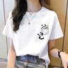 Women Short Sleeve Top Summer New Pocket Panda Cartoon Printed T-shirt Korean Fashion Women Tops Round Neck T Shirt Women