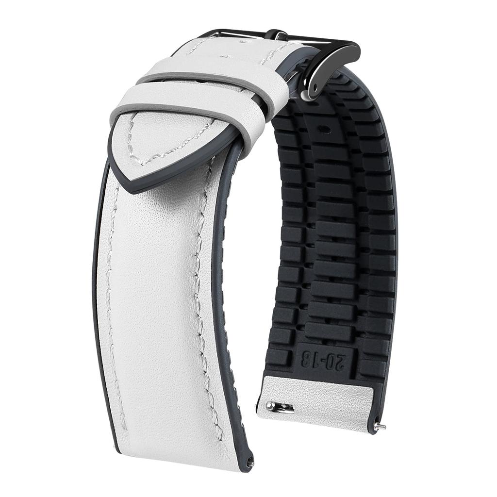 ★【Unique and Elegant Design】The watch strap design features a rubber inner layer with ventilation channels to wick away sweat. The rubber lining is perfect for exercise and active lifestyles, while the leather outer layer adds elegance for more formal occasions. This hybrid watch band combines durability and elegance.