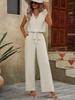 Embrace effortless style with this sleeveless V-neck top and drawstring wide-leg pants set, perfect for summer 2025. Designed with a solid pattern, this casual ensemble is crafted from comfortable polyester, ensuring a lightweight and breathable fit. The versatile design makes it perfect for everything from relaxed days at home to casual outings.