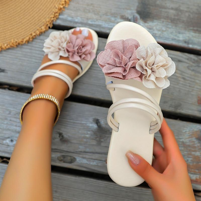 Retro women's outer wear summer new comfortable flowers with skirts one-word holiday slippers