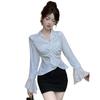V-neck Lace Long Sleeve Shirts Lace Clothing Sleeves Slim Buttons Shirts Korean Style Blouse Women