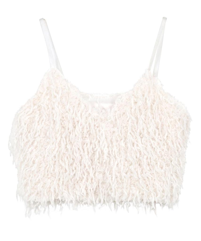 Kobe Lettuce Fur and Faux Feather Bustier Cami Cute Size Ivory Women's Top, Autumn/Winter, Top, M, [C7290]