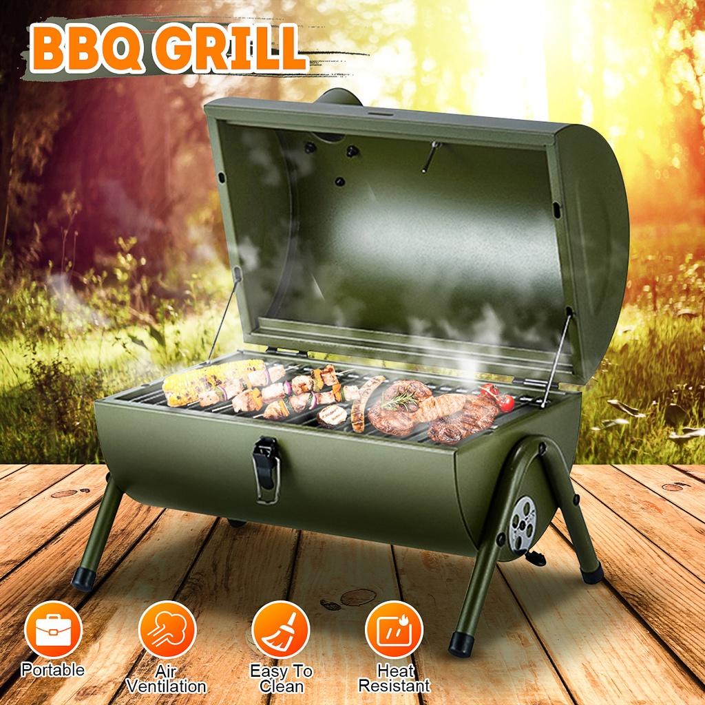 Red / Green Portable BBQ Grill Thickened Charcoal Barbecue Stove Pit Patio Yard Meat Cooker Set for Camping Picnic Outdoor