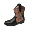 Large size pointed thick heel retro color matching printed short boots Martin boots new versatile fashion boots
