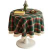 Christmas Tablecloth Round Checkered Fringe Red Green Plaid Vintage Luxury Party Dining Table Cover Decor