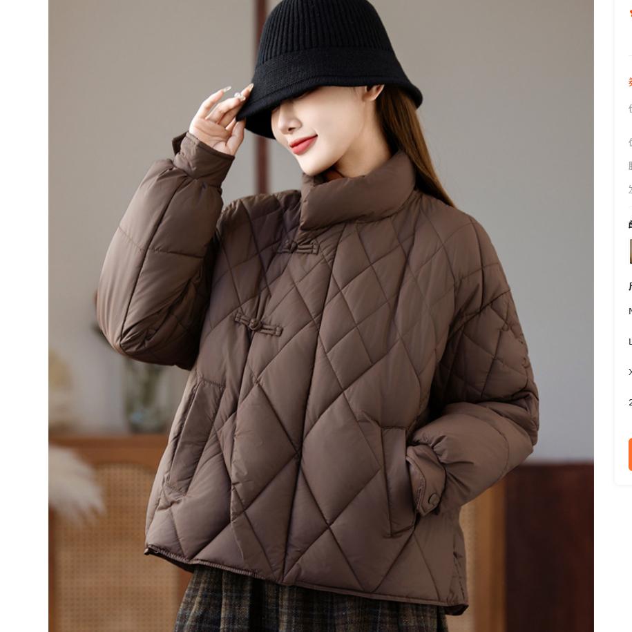 Jachetă Rombică Căptușită cu Bumbac pentru Femei, Scurtă, de Iarnă, Stil Etnic, Serie Guler Înalt, Jachetă Groasă Căptușită cu Bumbac