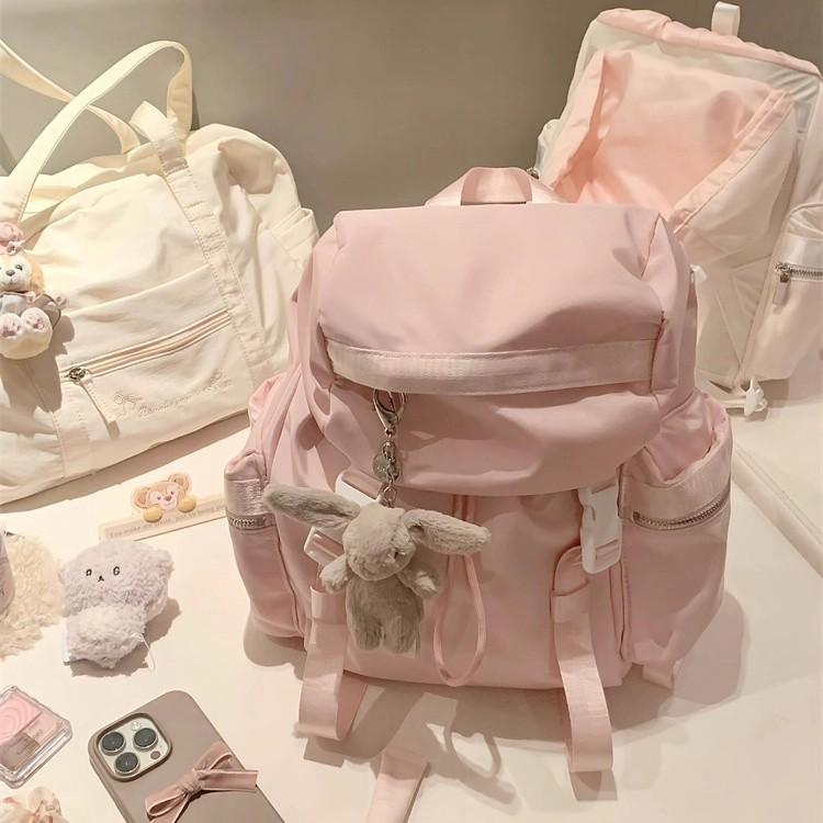 Sweet pink nylon backpack bag female style high value travel backpack student class bag