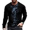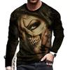 Fashion Men's Pullover Long Sleeve T-shirts Skull Printed Graphic O Neck Oversized Casual Tees Top Clothing
