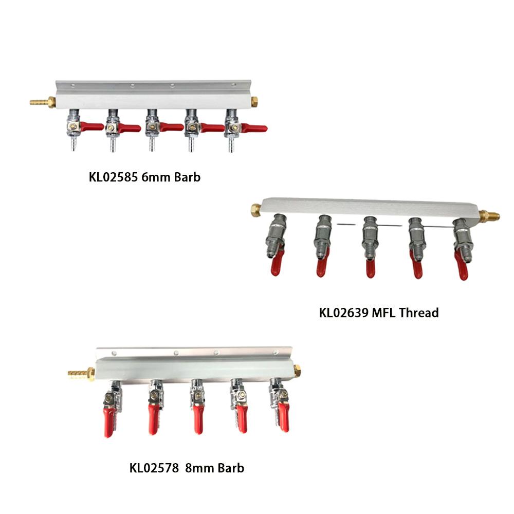 KegLand Barare Distribuitor Linie Gaz 5 Căi 6mm/8mm Racord Barb/Filet MFL Inox Distribuitor Bere Acasă