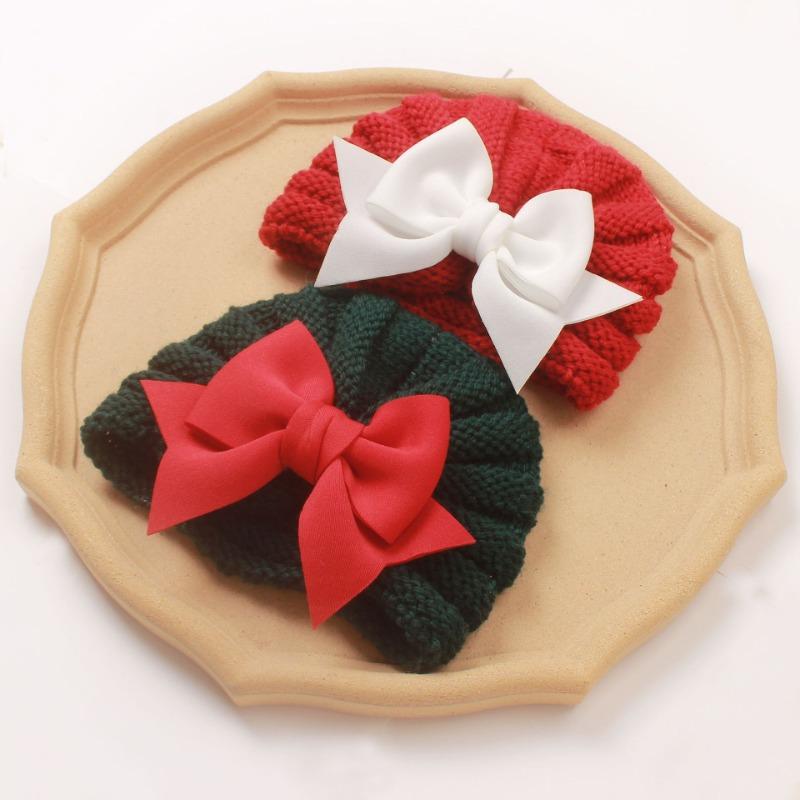 Christmas new baby autumn and winter warm knitted hat, children's bow pullover hat, baby hat