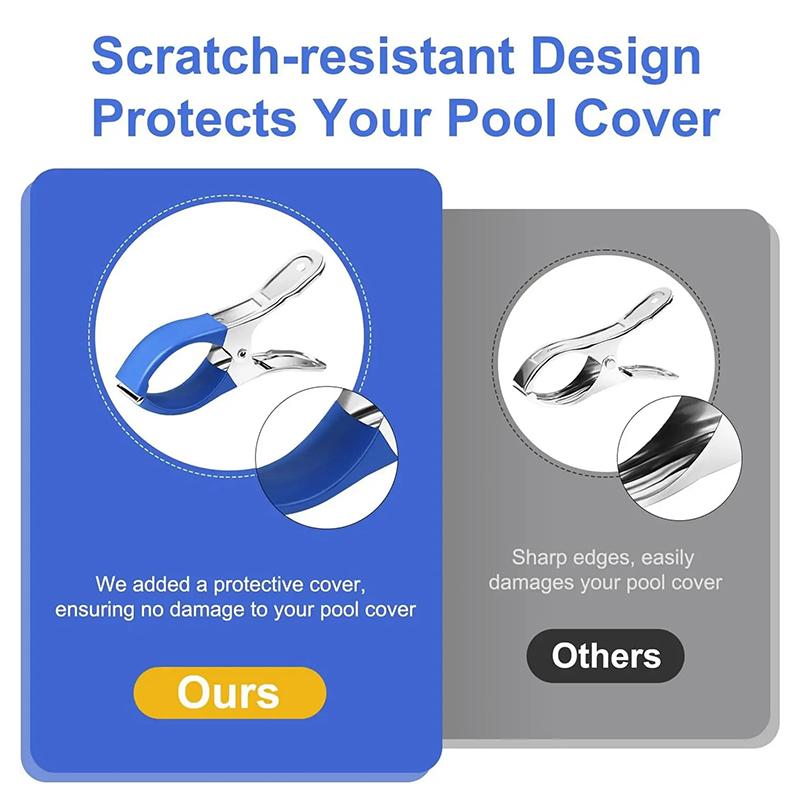 6 Pieces Durable Stainless Steel Pool Cover Clips With Blue Plastic Handles - Heavy Duty Windproof Spring Clips For Secure Above