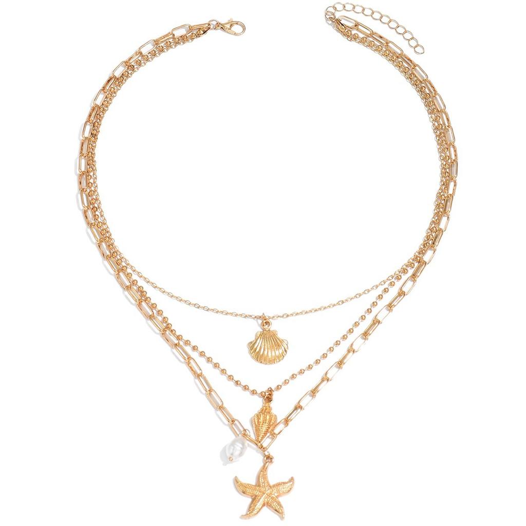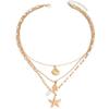 Boho Y2K Multilayer Crystal Chain Necklace for Women Star Moon Sun Starfish Shell Conch Pendant Choker Jewelry Accessories