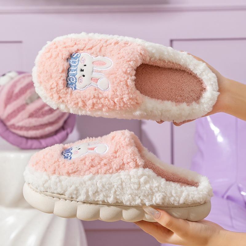 Cotton slippers women's autumn and winter indoor home new thick-bottomed non-slip warm household couple plush slippers