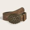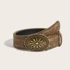 Vintage Carved Buckle Pu Wide Belts Boho Brown Embossed Waistband Western Jeans Pants Belt