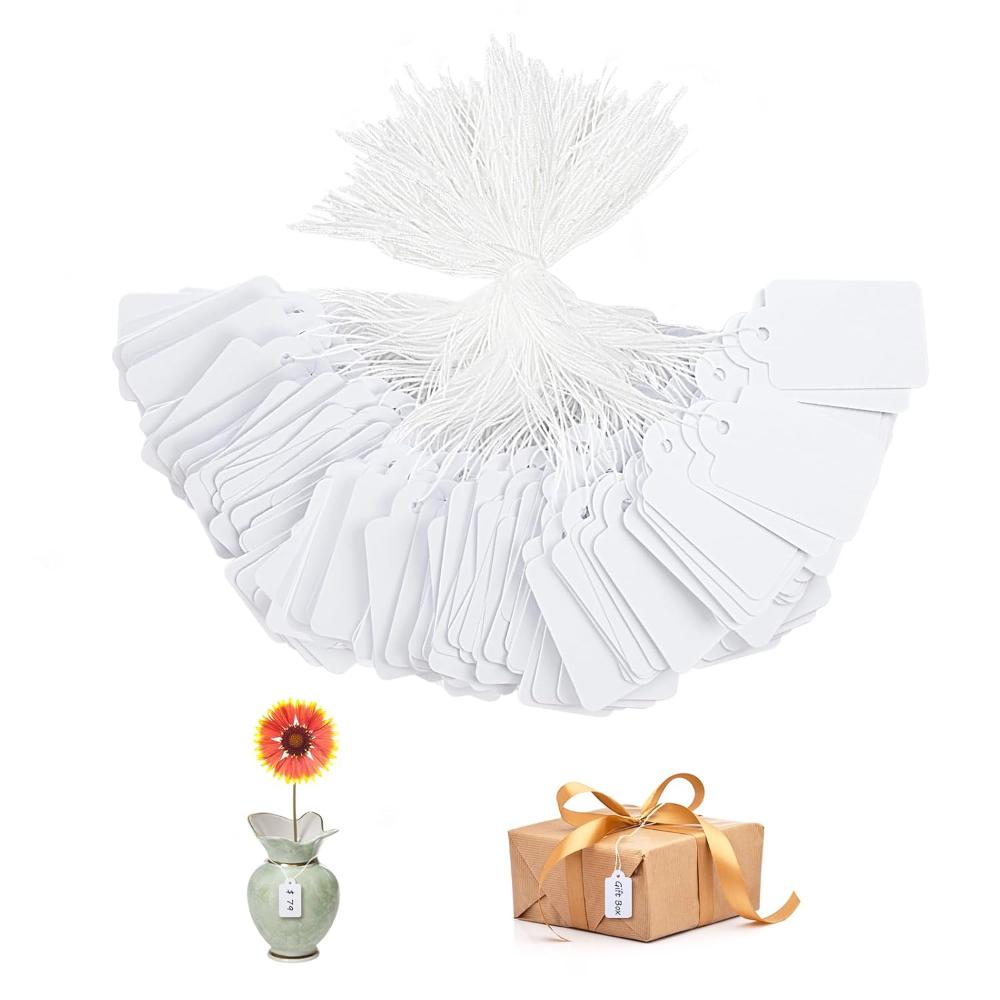 1000 PCS Price Tags with String Attached, 1.8 x 1 inch Small Blank Labeling Tags, White Marking Merchandise Strung Tags Writable Paper Tag for Present
