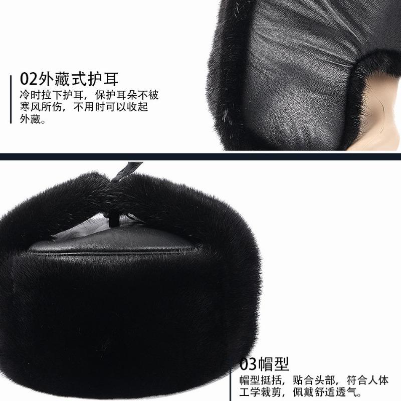 Căciulă de blană de nurcă pentru bărbați, protecție pentru urechi, călduroasă, groasă, protecție pentru urechi din nurcă întreagă, căciulă de blană
