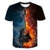 Summer Round Neck Colorful Guitar Graphic 3D Print Top Fashionable Casual Short Sleeved Men's T-shirts