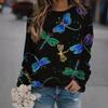 Fashionable Retro 3D Butterfly Print Women's Casual Round Neck Long Sleeved T-shirt