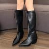 Winter Women High Boots Pointed Toe Mid Heels Chunky Shoes Winter Mew Brand 2025 Trend Designer Zippers Pumps Goth Botas Mujer