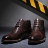 2024 Ghete Bărbați Toamnă Primăvară Piele Vârf Rotund Model Grilă Toc Pătrat Pantofi Bărbați Design Exquisit Fashion Leisure Ghete Bărbați