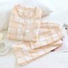 2026 Japanese New Women's Spring/Summer Pajama Two Piece Set 100% Cotton Round Neck Cardigan Long Sleeve Pants Home Clothing Set