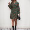 YYFS Moda damă primăvară toamnă cu imprimeu cu mâneci lungi cu decolteu în V talie înaltă rochii casual