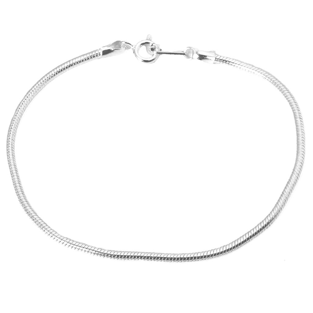 This bracelet features the popular snake chain with a flat body.Its simple design goes well with other bracelets, and even wearing it alone will give your hand an elegant look.
