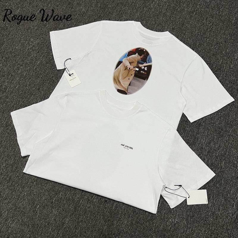 RogueWave America Style Short Sleeve Printing T-Shirt Men's Women's Slim Fit Round Neck Top Casual Cotton Basic Daily Routine Tee