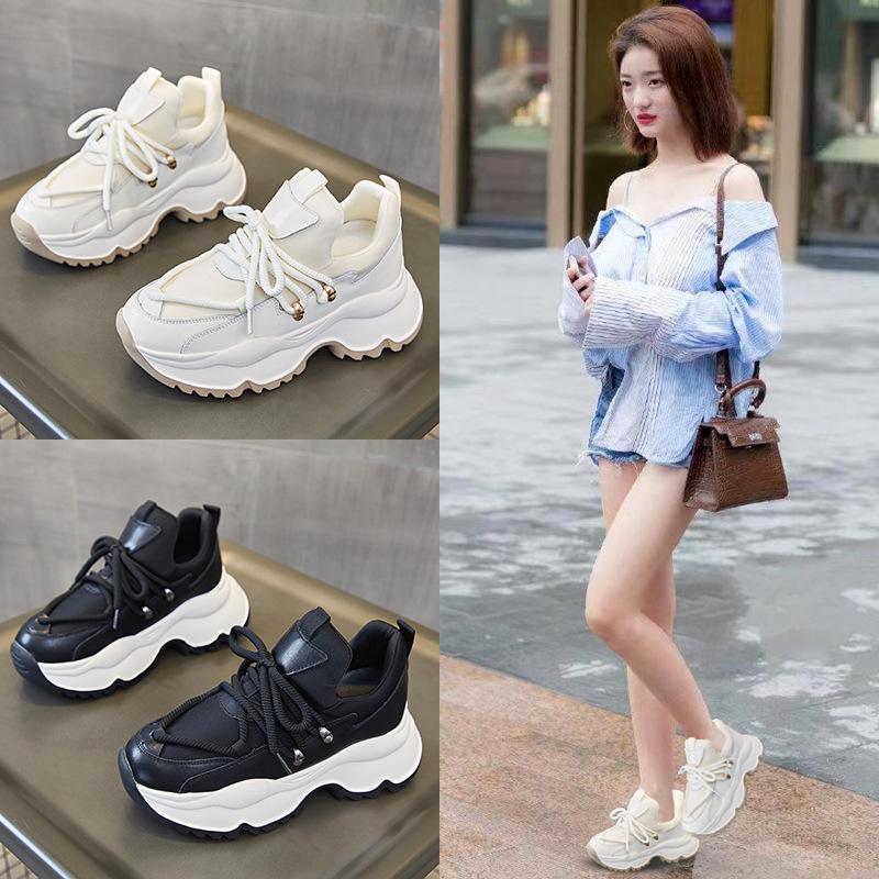 Leather dad shoes women's 2025 new autumn and winter platform heightening white shoes casual versatile lace-up sports shoes women