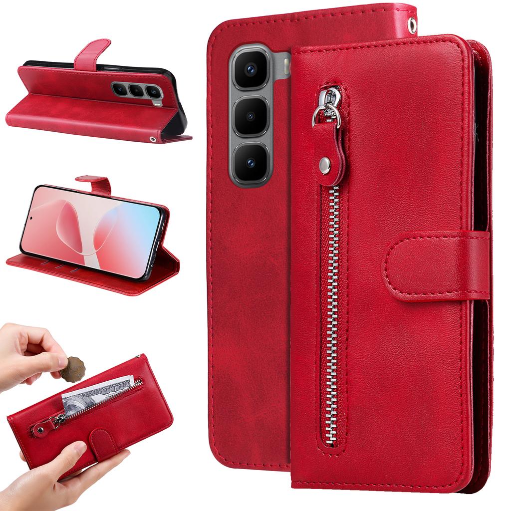For Infinix Hot 60 Pro+ 4G PU Leather Cases with Zipper Pocket Wallet Phone Cover Stand