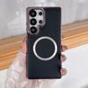 For Samsung Galaxy S25 Ultra Magnetic Case Electroplating Litchi Texture PU TPU PC Phone Back Cover