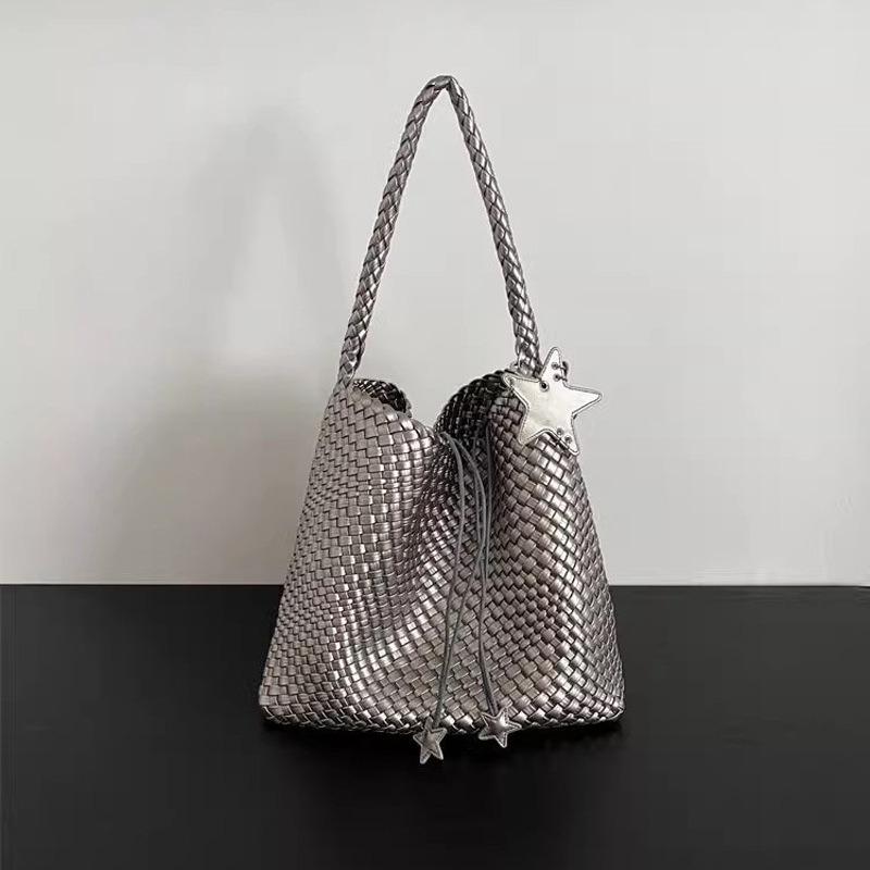 Gold hand-woven bag, bucket bag, women's high-end sense, exquisite hand-carried small bag, versatile commuter casual tote bag