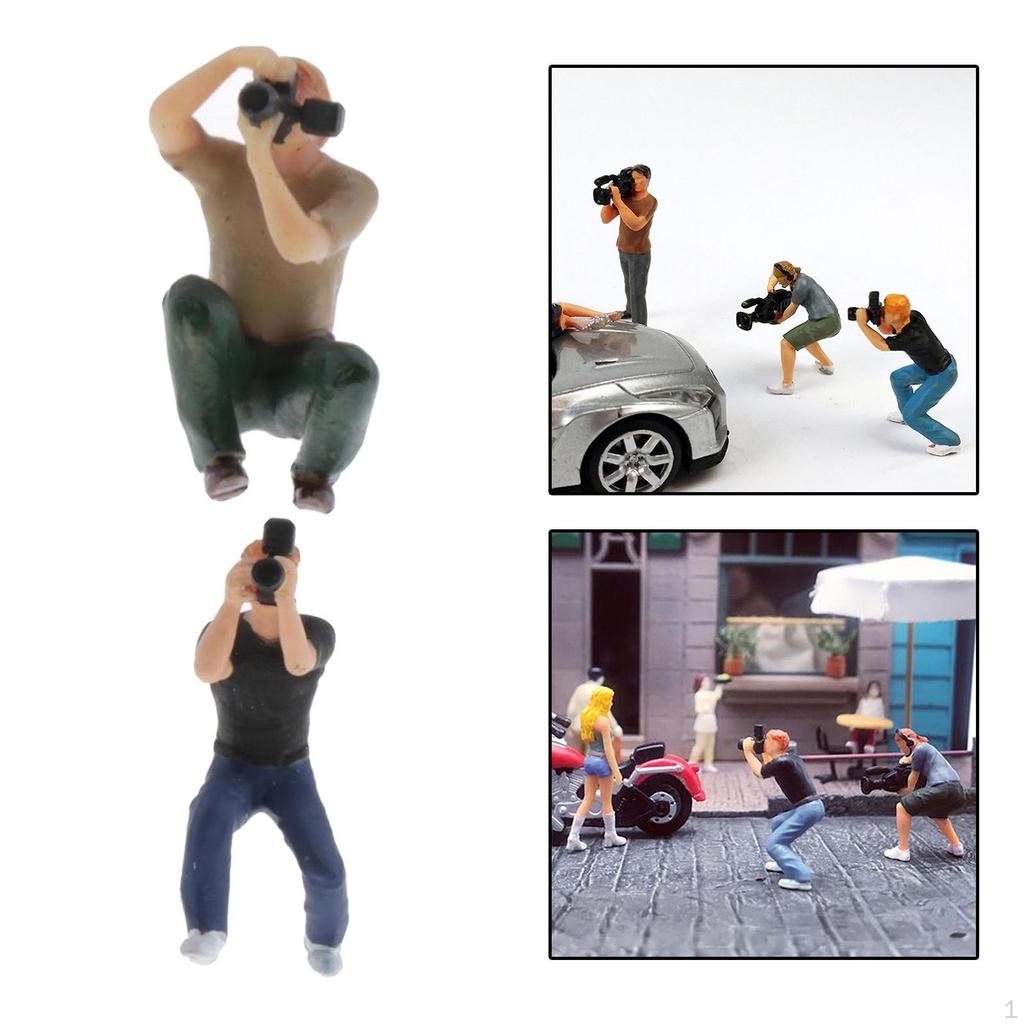 2pcs HO Scale Diorama Painted 1:87 Miniature Figure Photographer Model