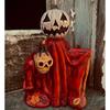 Accent Iconic de Dovleac: Dovleac clasic ținut în mâini subțiri, afișând ochi triunghiulari sculptați și un rânjet subtil dințat, iluminat de lumânări de ceai mini LED pentru un plus de teroare. Acest simbol iconic al Halloween-ului emană un farmec atemporal, făcându-l o piesă centrală ideală pentru decoruri cu tematică înfricoșătoare.